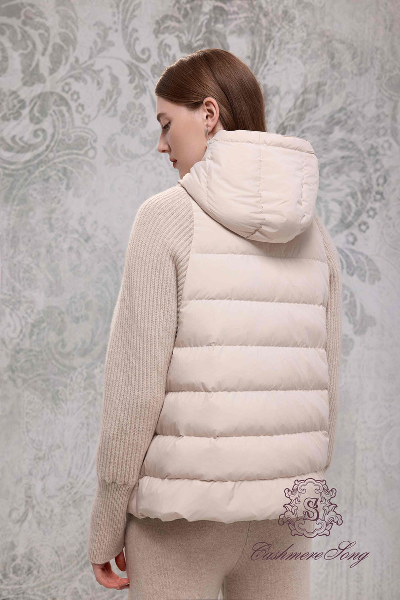 A mid-length hooded jacket with raglan sleeves for a young, fashion-forward feel. The front body is paneled with rex-rabbit fur that’s plush and smooth to the touch, adding visual richness and warmth. Cashmere sleeves keep the silhouette from feeling bulky and help slim the arms, while ribbed cuffs seal in heat.